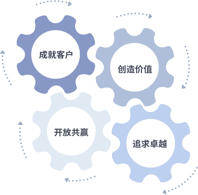 成就客户是一切决策的出发点,创造价值是衡量所有工作的标准,追求卓越是天游ty8做事做人的态度,开放共赢是天游ty8的格局也是最终的结果。价值观的齿轮环环相扣,推动着组织里的每个人不断向前。